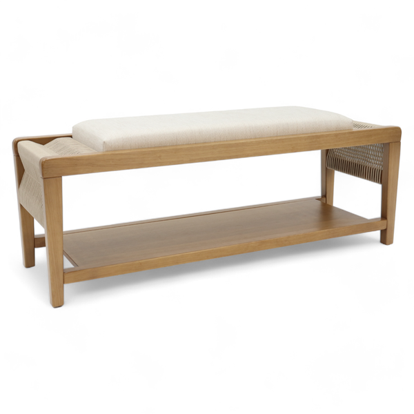 Um banco com detalhes perfeitos para sua decoração. O Banco Dijon é produzido em madeira de Tauari, uma madeira que provém de manejo sustentável, também conta com um trançado em cordas náutica, um detalhe todo produzido manualmente. A peça ideal para seu lar.