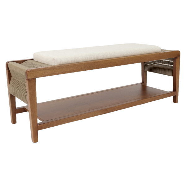 Um banco com detalhes perfeitos para sua decoração. O Banco Dijon é produzido em madeira de Tauari, uma madeira que provém de manejo sustentável, também conta com um trançado em cordas náutica, um detalhe todo produzido manualmente. A peça ideal para seu lar.