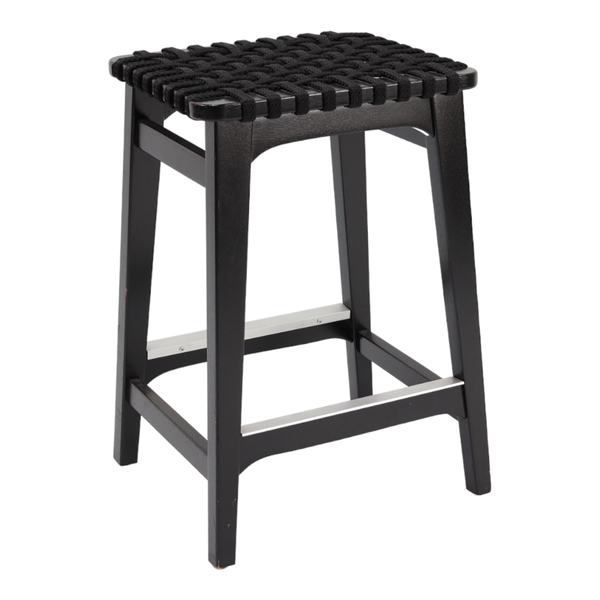 Ideal para Mesa Bistrô e Bancadas. Seu diferencial é o assento produzido de forma artesal com cordas náuticas. Banqueta linda e confortável. E no apoio de pés, possui uma proteção em alumínio para que não danifique a parte da madeira ao apoiar os pés.