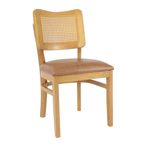 Cadeira Pinoli em Madeira Maciça e Assento Estofado. Produzido em madeira de Tauari, assento estofado e encosto com detalhes em tela sextavada. Uma opção de deixar sua sala de jantar mais elegante.
