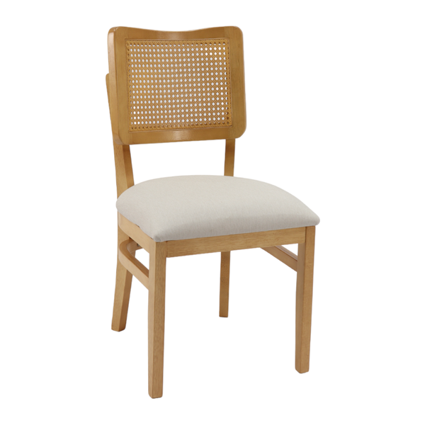 Cadeira Pinoli em Madeira Maciça e Assento Estofado. Produzido em madeira de Tauari, assento estofado e encosto com detalhes em tela sextavada. Uma opção de deixar sua sala de jantar mais elegante.