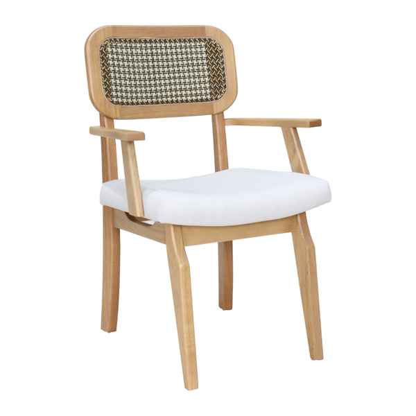 Uma cadeira elegante e estilosa para sua casa. A Cadeira Retrô com Braço é a cadeira ideal para o seu lar, ela é produzida em madeira maciça de Tauari, uma madeira que provém de manejo sustentável, possui um encosto com detalhes na tela sextavada, um detalhe que deixará a peça ainda mais sofisticada. Seu assento é estofádo e possui densidade de D23. A Cadeira Retrô possui os braços para que você possa se acomodar ainda mais confortável.