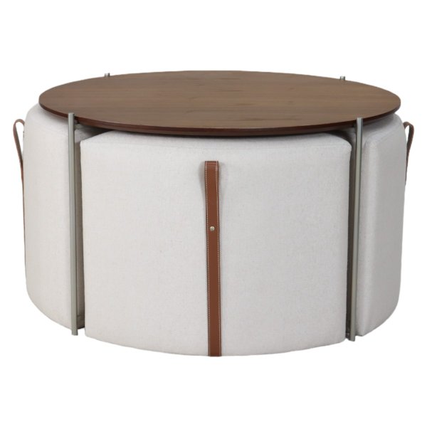 Conjunto Divas Mesa de Centro + 4 Pufes Estofados