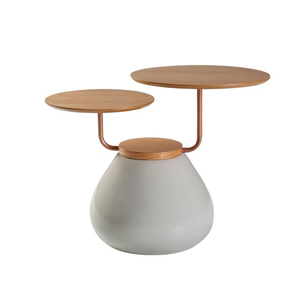 Um produto que traz a classe, elegância e também moderna. Possuindo dois tampos com tamanhos diferentes (um de 40cm e outro de 50 cm), deixará seu ambiente muito lindo. Seus tampos são produzidos com lâmina de cinamomo, e sua base de material sintético e essa base ainda possui uma pintura automotiva. A peça que você estava esperando para colocar em sua decoração!