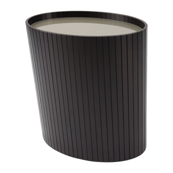 A mesa de apoio oval Texas, com sua forma fluida e detalhes em madeira, adapta-se perfeitamente a diversos estilos de interiores, do moderno ao rústico, trazendo sofisticação e charme para qualquer ambiente.