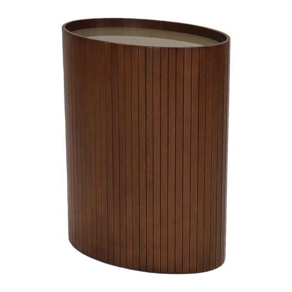 A mesa de apoio oval Texas, com sua forma fluida e detalhes em madeira, adapta-se perfeitamente a diversos estilos de interiores, do moderno ao rústico, trazendo sofisticação e charme para qualquer ambiente.
