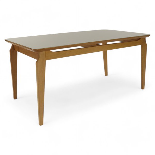 A mesa de jantar Retrô traz um toque de elegância clássica, com seus pés em madeira maciça de tauari que garantem robustez, enquanto a moldura de madeira com vidro de 4mm colado adiciona um charme moderno e sofisticado, perfeita para qualquer ambiente que deseje um design atemporal.