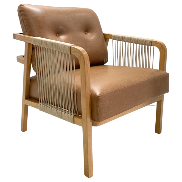 Poltrona Camenas é uma poltrona delicada e com um desing exclusivo. Possui nas laterais e encosto o detalhe das cordas no tom de areia dando um charme extra a peça. Uma peça produzida em madeira maciça de Tauari, uma madeira que provém de manejo sustentável. Possui assento e encosto estofado. Peça perfeita para seu ambiente.