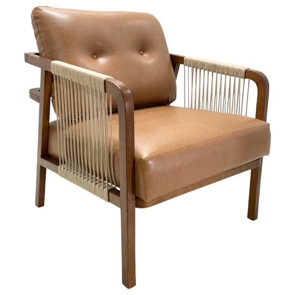 Poltrona Camenas é uma poltrona delicada e com um desing exclusivo. Possui nas laterais e encosto o detalhe das cordas no tom de areia dando um charme extra a peça. Uma peça produzida em madeira maciça de Tauari, uma madeira que provém de manejo sustentável. Possui assento e encosto estofado. Peça perfeita para seu ambiente.