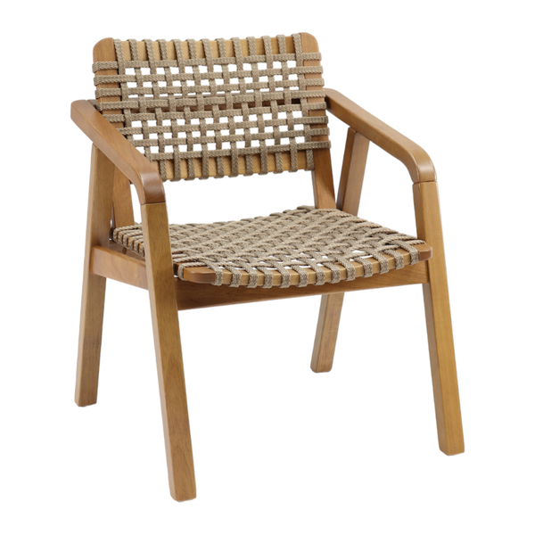 A Poltrona Luanda é a combinação perfeita entre sofisticação, conforto e design único. Produzida com madeira maciça de tauari, ela traz resistência e durabilidade, ideal para quem busca qualidade. Seu assento e encosto trançados manualmente com cordas náuticas conferem um toque artesanal exclusivo, proporcionando um visual diferenciado e aconchegante para qualquer ambiente. Os braços anatômicos garantem um suporte perfeito para seu corpo, oferecendo conforto inigualável para momentos de relaxamento.