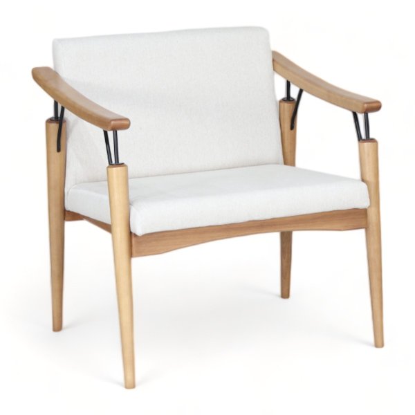 A fusão entre a madeira maciça de tauari e os detalhes metálicos nos braços, junto ao assento estofado com densidade D26, resulta em um design moderno e sofisticado, ideal para quem busca beleza e funcionalidade em uma única peça.