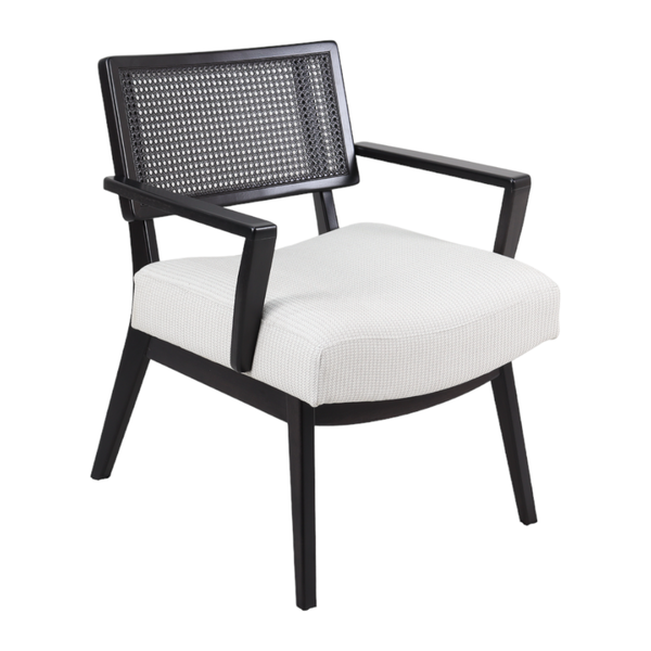 A poltrona Roma é um verdadeiro charme, combinando a elegância da madeira maciça de tauari com o detalhe único da tela sextavada, criando um design sofisticado que transforma qualquer ambiente com estilo.